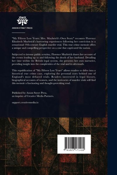 "My Fifteen Lost Years: Mrs. Maybrick's Own Story" recounts Florence Elizabeth Maybrick's harrowing experiences following her conviction in a sensational 19th-century English murder trial. This true crime memoir offers a unique and compelling perspective on a case that captivated the nation. Subjected to intense public scrutiny, Florence Maybrick shares her account of the events leading up to and following the death of her husband. Detailing her time within the British legal system, she presents her own narrative, providing insight into the complexities of the trial and its aftermath. This republication of "My Fifteen Lost Years" allows readers to delve into a historical true crime case, exploring the personal story behind one of England's most debated trials. Readers interested in legal history, biographical accounts of women, and the intricacies of murder trials will find this memoir a fascinating and thought-provoking read. This work has been selected by scholars as being culturally important, and is part of the knowledge base of civilization as we know it. This work is in the public domain in the United States of America, and possibly other nations. Within the United States, you may freely copy and distribute this work, as no entity (individual or corporate) has a copyright on the body of the work. Scholars believe, and we concur, that this work is important enough to be preserved, reproduced, and made generally available to the public. We appreciate your support of the preservation process, and thank you for being an important part of keeping this knowledge alive and relevant.