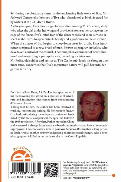 Set during revolutionary times in the enchanting little town of Boz, Mrs Palermo's Cottage tells the story of Eva who, abandoned at birth, is cared for by Sisters at the Children's Home. As the years pass, Eva's life changes forever after meeting Mrs Palermo, a lady who takes the girl under her wing and provides a home at her cottage on the edge of the forest. Eva's initial fear of the dense woodland soon turns to respect as she learns to appreciate its beauty and significance to life all around. When the mayor of Boz begins to chop down trees for profit, Eva's innocence is exposed to a new breed of man, known as gangster capitalists, who have taken control of the council. The tranquil environment of Boz is shattered and everything is put up for sale, including society's soul. Mr Polka, old soldier and janitor at The Castle pub, loads his shotgun one more time, concerned that Eva's inquisitive nature will pull her into dangerous territory. Born in Hadlow, Kent, AR Parker has spent most of his life traveling the world on a rare sense of adventure and inspiration that comes from encountering different cultures. Throughout his life, the author has been involved in teaching, tourism, and writing. He first went to Prague, Czechoslovakia during the unique early nineties, fascinated by the social and political changes that followed the 1989 revolution. After that, Parker moved to China and witnessed it change from a peasant-based communist system into an economic superpower. There followed a time in post-war Sarajevo, Bosnia, then a long period in Saudi Arabia, another country undergoing enormous social changes. Also a keen photographer, AR Parker currently resides in the Czech Republic.