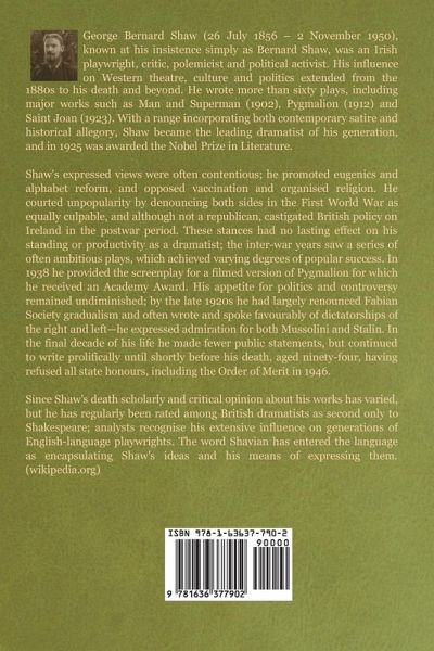 George Bernard Shaw, known simply as Bernard Shaw, was an Irish playwright, critic, polemicist, and political activist, born on July 26, 1856, in Dublin, Ireland. Shaw s influence spanned several decades, with his contributions to Western theatre, culture, and politics shaping thought from the 1880s through to his death in 1950. His plays, known for their sharp wit, social commentary, and intellectual rigor, tackled a wide range of issues, including class, gender, and the failures of society and government. He won the Nobel Prize in Literature in 1925, which recognized his profound impact on literature and theatre. Throughout his career, Shaw remained deeply involved in political causes, advocating for social reforms, and his works often reflected his progressive views. His legacy is marked by a combination of literary innovation and commitment to social justice, and he is regarded as one of the most influential playwrights of the 20th century. Shaw passed away on November 2, 1950, at the age of 94 in Ayot Saint Lawrence, United Kingdom, leaving behind a lasting imprint on both literature and political thought.