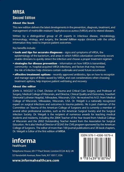 Responding to the growing concern about the increased frequency and resistance of MRSA infections, this invaluable source analyzes the latest developments in the identification, assessment, and management of methicillin-resistant Staphylococcus aureus (MRSA) by leading authorities on the topic.