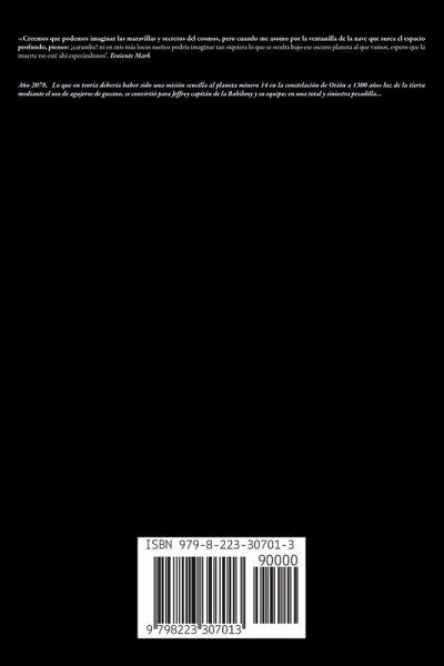 «Creemos que podemos imaginar las maravillas y secretos del cosmos, pero cuando me asomo por la ventanilla de la nave que surca el espacio profundo, pienso: ¡caramba! ni en mis más locos sueños podría imaginar tan siquiera lo que se oculta bajo ese oscuro planeta al que vamos, espero que la muerte no esté ahí esperándonos". Teniente Mark Año 2078. Lo que en teoría debería haber sido una misión sencilla al planeta minero 14 en la constelación de Orión a 1300 años luz de la tierra mediante el uso de agujeros de gusano, se convirtió para Jeffrey capitán de la Babilony y su equipo; en una total y siniestra pesadilla…