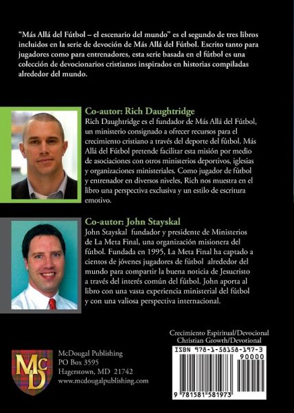 "Más Allá del Fútbol - el escenario del mundo" es el segundo de tres libros incluidos en la serie de devoción de Más Allá del Fútbol. Escrito tanto para jugadores como para entrenadores, esta serie basada en el fútbol es una colección de devocionarios cristianos inspirados en historias compiladas alrededor del mundo