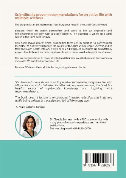 Live self-determined - even with multiple sclerosis!The diagnosis can be frightening - but stick your head in the sand? Definitely not!Because there are many possibilities and ways how you can lead a happy and self-determined life even with multiple sclerosis.The only question is: where do I start? Which is the right path for me?This book clearly shows what options there are in addition to conventional medicine to positively influence the course of the disease in multiple sclerosis and to take your own health into your own hands. All proposed measures are scientifically proven. They also have the power to enrich one's life beyond the illness.Because MS is not the end, it is the beginning of a new chapter!What awaits you:_ 9 Actionable Measure - "Healthy Living for a Healthy Living!"The book shows 9 self-implementable measures that can positively influence the course of MS.It summarizes the essence of several hundred scientific studies.All recommendations are easy to understand and implement!_ A Personal Story - "From Diagnosis to Today"Accompany the author through her own medical history.You will find very personal insights from the diagnosis to experiences with fatigue and relapses, specially marked again and again throughout the book._ Background knowledge - "Conventional medicine and lifestyle complement each other!"Therefore, everyone affected should know about the disease and have access to information about treatment options. You will find chapters that explain MS, but also show various basic therapies and their effectiveness.Use these chapters to deepen your understanding of MS and as a reference and basis for discussion with your doctor.