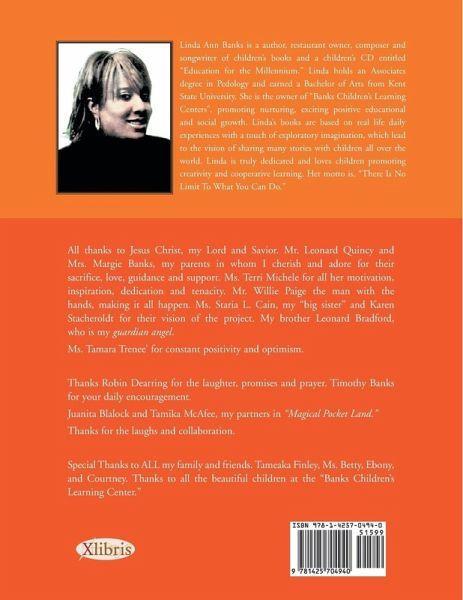 A Pittsburgh, Pennsylvania native Linda A. banks is the owner of Banks Childrens Learning Centers, songwriter, an author with degrees in Pedology and a Bachelor of Arts. She has also published Ms. Lindas Magical Pockets and Ms. Lindas Precious Time-out, including a childrens musical CD/DVD Education for the Millennium. Linda has been recognized internationally by Black Enterprise Magazine for her entrepreneurial endeavors with children.