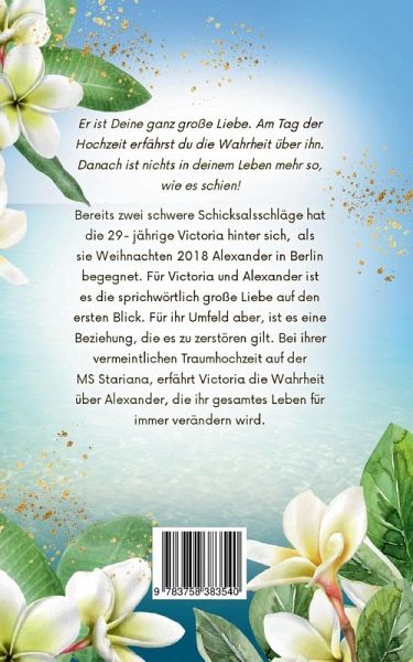 MS StarianaNichts ist schlimmer als die WahrheitEr ist Deine ganz große Liebe. Am Tag der Hochzeit erfährst du die Wahrheit über ihn. Danach ist nichts in deinem Leben mehr so, wie es schien!Bereits zwei schwere Schicksalsschläge hat die 29- jährige Victoria hinter sich, als sie Weihnachten 2018 Alexander in Berlin begegnet. Für Victoria und Alexander ist es die sprichwörtlich große Liebe auf den ersten Blick. Für ihr Umfeld aber, ist es eine Beziehung, die es zu zerstören gilt. Bei ihrer vermeintlichen Traumhochzeit auf der MS Stariana, erfährt Victoria die Wahrheit über Alexander, die ihr gesamtes Leben für immer verändern wird.