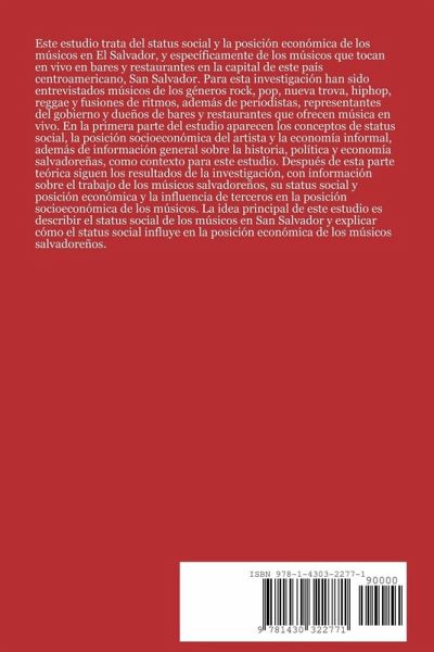 Este estudio trata del status social y la posición económica de los músicos que tocan en vivo en bares y restaurantes de San Salvador, El Salvador.