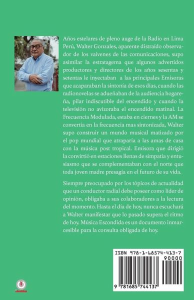 Años estelares de pleno auge de la Radio en Lima Perú, Walter Gonzales, aparente distraído observador de los vaivenes de las comunicaciones, supo asimilar la estratagema que algunos advertidos productores y directores de los años sesentas y setentas le inyectaban a las principales Emisoras que acaparaban la sintonía de esos días, cuando las radionovelas se adueñaban de la audiencia hogareña, pilar indiscutible del encendido y cuando la televisión no avizoraba el encendido matinal. La Frecuencia Modulada, estaba en ciernes y la AM se convertía en la frecuencia mas sintonizada, Walter supo construir un mundo musical matizado por el pop mundial que atraparía a las amas de casa con la música post tropical. Emisora que dirigió la convirtió en estaciones llenas de simpatía y entusiasmo que se complementaban con el norte que toda joven madre presagia en el futuro de su vida. Siempre preocupado por los tópicos de actualidad que un conductor radial debe poseer como líder de opinión, obligaba a sus colaboradores a la lectura del momento. Hasta el día de hoy, nunca escuchará a Walter manifestar que lo pasado supera el ritmo de hoy. Música Escondida es un documento inmarcesible para la consulta obligada de hoy.