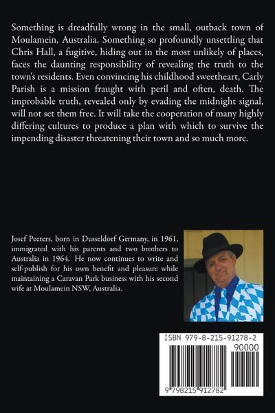 Something is dreadfully wrong in the small, outback town of Moulamein, Australia. Something so profoundly unsettling that Chris Hall, a fugitive, hiding out in the most unlikely of places, faces the daunting responsibility of revealing the truth to the town's residents. Even convincing his childhood sweetheart, Carly Parish is a mission fraught with peril and often, death. The improbable truth, revealed only by evading the midnight signal, will not set them free. It will take the cooperation of many highly differing cultures to produce a plan with which to survive the impending disaster threatening their town and so much more.