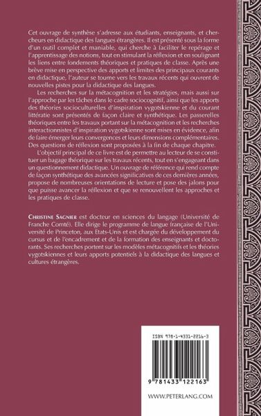 « Voilà un ouvrage nécessaire qui vient combler un vide dans le domaine de la didactique des langues étrangères et qui sera d'une grande utilité pratique tant pour les enseignants de langues, cultures et literatures étrangères que pour leurs formateurs, novices ou chevronnés, de part et d'autre de l'Atlantique. Ils y trouveront non seulement un état des lieux fort clair des méthodologies et approches passées et actuelles ainsi que de leurs fondements théoriques, mais aussi et surtout la présentation de pistes prometteuses pour une nouvelle pédagogie s'appuyant sur la synthèse de domaines de recherche jusqu'ici trop souvent considérés isolément : cognitivisme, modèles métacognitifs, apprentissage par les tâches et courant socioculturel vygostkien. Christine Sagnier fait ici oeuvre de rapprochement et de clarification : en dépit de la fragmentation des saviors et du cloisonnement des disciplines, bravant le foisonnement des travaux, courants et modèles élaborés en Europe comme en Amérique du Nord, elle dégage un certain nombre de notions et directions essentielles dont elle donne une présentation très pédagogique, rigoureuse mais toujours abordable, même pour le néophyte. On attend avec impatience un second volume illustrant les applications dans la salle de classe de ce qu'elle a appelé « une didactique de la cognition située ». (Pascale Hubert-Leibler, directrice du programme de langue française, Columbia University, New York)