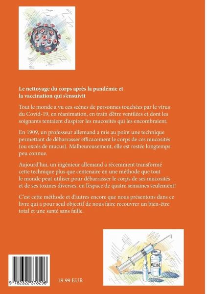 Le nettoyage du corps après la pandémie.Tout le monde a vu ces scènes de personnes touchées par le virus du Covid-19, en réanimation, en train d'être ventilées et dont les soignants tentaient d'aspirer les mucosités qui les encombraient.En 1909, un professeur allemand a mis au point une technique permettant de débarrasser efficacement le corps de ces mucosités (ou excés de mucus). Malheureusement, elle est restée longtemps peu connue.Aujourd'hui, un ingénieur allemand a récemment transformé cette technique plus que centenaire en une méthode que tout le monde peut utiliser pour débarrasser le corps de ses mucosités et de ses toxines diverses, en l'espace de quatre semaines seulement !C'est cette méthode et d'autres encore que nous présentons dans ce livre qui a pour seul objectif de nous faire recouvrer un bien-être total et une santé sans faille.