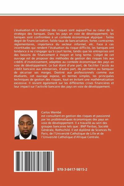 L évaluation et la maîtrise des risques sont aujourd hui au c ur de la stratégie des banques. Dans les pays en voie de développement, les banques sont confrontées à un contexte économique atypique : faible degré de financiarisation, faible taux de bancarisation, fortes contraintes réglementaires, importance du secteur informel, etc. Face à ces incertitudes qui rendent l évaluation du risque difficile, les banques ont tendance à ne s engager qu à court terme, tandis que les entreprises ont des besoins de financement à moyen et long terme. L'objet de cet ouvrage est de proposer des méthodes de gestion des risques liés aux crédits d investissement, adaptées au contexte économique des pays en voie de développement. Le but étant d une part, de faciliter l accès au crédit bancaire aux entreprises, d autre part, de permettre au banquier de sécuriser ses marges. Destiné aux professionnels comme aux étudiants, cet ouvrage expose, en termes simples, les principales techniques de gestion des risques, tout en évitant une mathématisation excessive. Il revient également sur les différentes crises financières et leur impact sur l activité bancaire des pays en voie de développement.