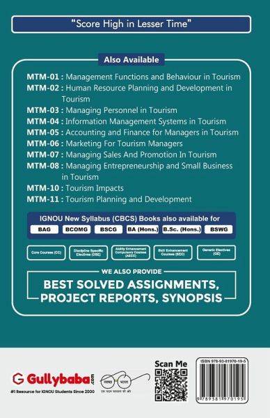 MTM-06 Marketing for tourism managers Block 1 - All Units Unit 1 - Introduction of Marketing Unit 2 - Marketing in a Developing Economy Unit 3 - Marketing of Services Unit 4 - Planning Marketing Mix Unit 5 - Market Segmentation Unit 6 - Marketing Organisation Unit 7 - Marketing Research and its Applications Unit 8 - Determinants of Consumer Behaviour Unit 9 - Models of Consumer Behaviour Unit 10 - Indian Consumer Environment Unit 11 - Product Decisions and Strategies Unit 12 - Product Life Cycle and New Product Development Unit 13 - Branding and Packaging Decisions Unit 14 - Pricing Policies and Practices Unit 15 - Marketing Communications Unit 16 - Advertising and Publicity Unit 17 - Personal Selling and Sales Promotion Unit 18 - Sales Forecasting Unit 19 - Distribution Strategies Unit 20 - Managing Sales Personnel Unit 21 - Marketing and Public Policy Unit 22 - Cyber Marketing Previous Year Solved Question Papers Included MTM-06 English (Total-4, Solved-0, Unsolved-4) June (2020-2021) December (2020-2021)