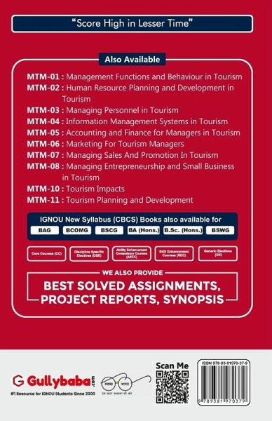 MTM-08 Managing Entrepreneurship and Small Bussiness in Tourism Block 1 - All Units Unit 1 - Enterpreneurship and Small Sclae Enterprises Unit 2 - Enterpreneur and Entrepreneurship Unit 3 - Institutional Interface for Small Scale Unit 4 - Opportunity Scanning and Identification Unit 5 - Market Assessment for SSE Unit 6 - Choice of Technology and Selection of Site Unit 7 - Financing the New/Small Enterprises Unit 8 - Preparation of the Business Plan Unit 9 - Ownership Structures and Organisational Framework Unit 10 - Financial Management Issues in SSE Unit 11 - Organisational Relations in SSE: Human Resources Unit 12 - Strategies for stabilisation and Growth Unit 13 - Management Performance Assessment and Control Unit 14 - Managing Family Enterprises Previous Year Solved Question Papers Included MTM-08 English (Total-4, Solved-0, Unsolved-4) June (2020-2021) December (2020-2021)