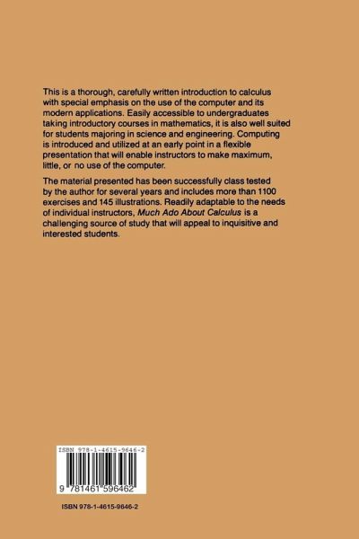 The calculus has been one ofthe areas of mathematics with a large number of significant applications since its formal development in the seventeenth century. With the recent development of the digital computer, the range of applications of mathematics, including the calculus, has increased greatly and now includes many disciplines that were formerly thought to be non quantitative. Some of the more traditional applications have been altered, by the presence of a computer, to an extent such that many problems hitherto felt to be intractable are now solvable. This book has been written as a reaction to events that have altered the applications of the calculus. The use of the computer is made possible at an early point, although the extent to which the computer is used in the course is subject to the decision of the instructor. Some less traditional applications are included in order to provide some insight into the breadth of problems that are now susceptible to mathematical solution. The Stieltjes integral is introduced to provide for easier transition from the stated problem to its mathematical formulation, and also to permit the use of functions like step functions in later courses (such as statistics) with relative ease. The course is designed to include all the background material ordinarily associa ted with the first course in the calculus, but it is also designed with the user in mind.