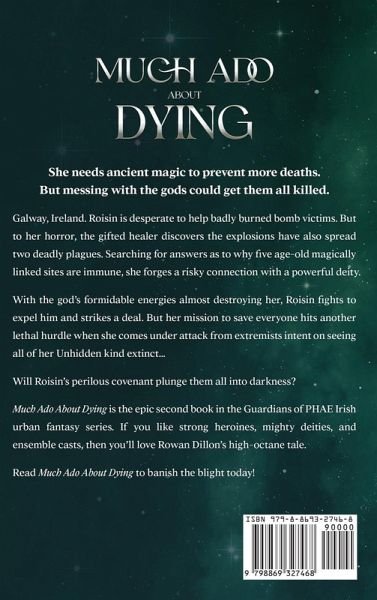 She needs ancient magic to prevent more deaths. But messing with the gods could get them all killed. Galway, Ireland. It's just another day in the life of poor Róisín, desperately trying to save lives. No pressure or anything. But the bombs didn't just leave people badly burned, but they also unleashed two horrific plagues. In her quest for answers, Róisín stumbles upon a mind-boggling revelation. Five ancient sites, connected by magic, seem to be immune to the plagues. Our gifted healer forges a connection with an all-powerful ancient deity. Because messing with gods is always a fabulous idea. Things quickly spiral out of control. The god's power nearly obliterates poor Róisín, leaving her hanging on by a thread. But she strikes a deal with the ancient healer. Saving everyone sounds great, but when she's attacked by extremists hell-bent on wiping out all the Unhidden, things kick into high gear. Will Róisín's dangerous pact lead them all into darkness? Only time will tell. And sheer dumb luck. Much Ado About Dying is the second installment in the rip-roaring Guardians of PHAE Irish contemporary fantasy trilogy. Get ready for strong heroines, deities with egos bigger than their magic, and an ensemble cast with superhero powers. Start reading Much Ado About Dying to banish evil to the fiery pits of oblivion.