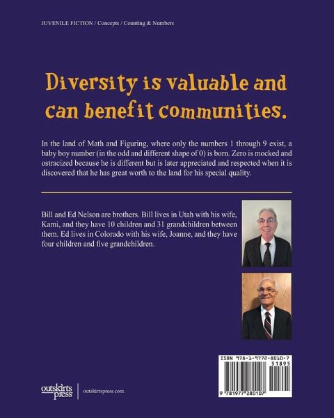 In the land of Math and Figuring, where only the numbers 1 through 9 exist, a baby boy number (in the odd and different shape of 0) is born. Zero is mocked and ostracized because he is different but is later appreciated and respected when it is discovered that he has great worth to the land for his special quality.