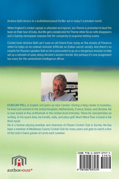 Andrew Ball returns in a multidimensional thriller set in today's turbulent world. When England's cricket captain is attacked and injured, Ian Thorne is promoted to lead the team on their tour of India. But life gets complicated for Thorne when his ex-wife disappears and a Sunday newspaper exposes him for conspiring to organise betting scams. Cricket lover Andrew Ball can't save an old friend from dying on the streets of Florence when he helps an ex-cabinet minister infiltrate an Italian secret society. And there's no respite for Russian speaker Ball as he is persuaded to go on a dangerous mission to help set up a network of spies along Ukraine's eastern border. But perhaps it's one assignment too many for the semiretired intelligence officer.