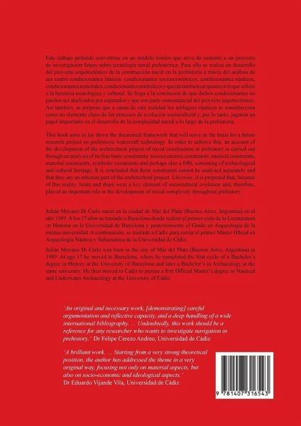 Este trabajo pretende convertirse en un modelo teórico que sirva de sustento a un proyecto de investigación futuro sobre tecnología naval prehistórica. Para ello se realiza un desarrollo del proyecto arquitectónico de la construcción naval en la prehistoria a través del análisis de sus cuatro condicionantes básicos: condicionantes socioeconómicos, condicionantes náuticos, condicionantes materiales, condicionantes simbólicos y quizás también un quinto en lo que refiere a la herencia tecnológica y cultural. Se llega a la conclusión de que dichos condicionantes no pueden ser analizados por separados y que son parte consustancial del proyecto arquitectónico. Así también, se propone que a causa de esta realidad los artilugios náuticos se constituyeron como un elemento clave de los procesos de evolución sociocultural y, por lo tanto, jugaron un papel importante en el desarrollo de la complejidad social a lo largo de la prehistoria. This book aims to lay down the theoretical framework that will serve as the basis for a future research project on prehistoric watercraft technology. In order to achieve this, an account of the development of the architectural project of naval construction in prehistory is carried out through an analysis of its four basic constraints: socioeconomic constraints, nautical constraints, material constraints, symbolic constraints and perhaps also a fifth, consisting of technological and cultural heritage. It is concluded that these constraints cannot be analysed separately and that they are an inherent part of the architectural project. Likewise, it is proposed that, because of this reality, boats and ships were a key element of sociocultural evolution and, therefore, played an important role in the development of social complexity throughout prehistory.