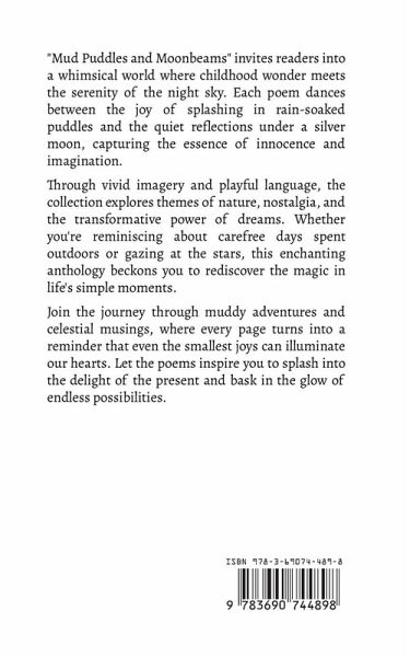 "Mud Puddles and Moonbeams" invites readers into a whimsical world where childhood wonder meets the serenity of the night sky. Each poem dances between the joy of splashing in rain-soaked puddles and the quiet reflections under a silver moon, capturing the essence of innocence and imagination. Through vivid imagery and playful language, the collection explores themes of nature, nostalgia, and the transformative power of dreams. Whether you're reminiscing about carefree days spent outdoors or gazing at the stars, this enchanting anthology beckons you to rediscover the magic in life's simple moments. Join the journey through muddy adventures and celestial musings, where every page turns into a reminder that even the smallest joys can illuminate our hearts. Let the poems inspire you to splash into the delight of the present and bask in the glow of endless possibilities.