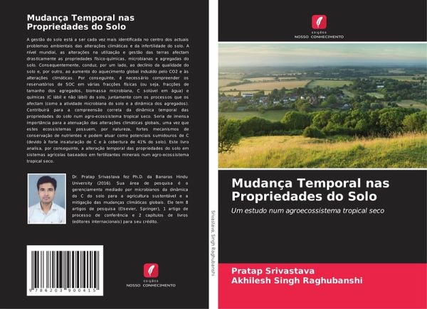 A gestão do solo está a ser cada vez mais identificada no centro dos actuais problemas ambientais das alterações climáticas e da infertilidade do solo. A nível mundial, as alterações na utilização e gestão das terras afectam drasticamente as propriedades físico-químicas, microbianas e agregadas do solo. Consequentemente, conduz, por um lado, ao declínio da qualidade do solo e, por outro, ao aumento do aquecimento global induzido pelo CO2 e às alterações climáticas. Por conseguinte, é necessário compreender os reservatórios de SOC em várias fracções físicas (ou seja, fracções de tamanho dos agregados, biomassa microbiana, C solúvel em água) e químicas (C lábil e não lábil) do solo, juntamente com os processos que os afectam (como a atividade microbiana do solo e a dinâmica dos agregados). Contribuirá para a compreensão correta da dinâmica temporal das propriedades do solo num agro-ecossistema tropical seco. Seria de imensa importância para a atenuação das alterações climáticas globais, uma vez que estes ecossistemas possuem, por natureza, fortes mecanismos de conservação de nutrientes e podem atuar como potenciais sumidouros de C (devido à forte insaturação de C e à cobertura de 41% do solo). Este livro analisa, por conseguinte, a alteração temporal das propriedades do solo em sistemas agrícolas baseados em fertilizantes minerais num agro-ecossistema tropical seco.