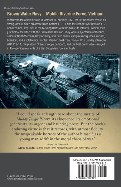 Muddy Jungle Rivers, a river assault boat Cox'n's memory journey of his war in Vietnam and return home, gives the reader a close-up look at life in the Mobile Riverine Force during 1968, the bloodiest year of the Vietnam War. Images come alive as the story unfolds about a seven-man crew captained by a volatile, pro-war enlisted man. Told from a twenty-year-old sailor's point of view, this memoir takes the reader into frustration, rage, terror, death, betrayal, and search for redemption. This book won the Minnesota Veteran's Voices Award in 2017.