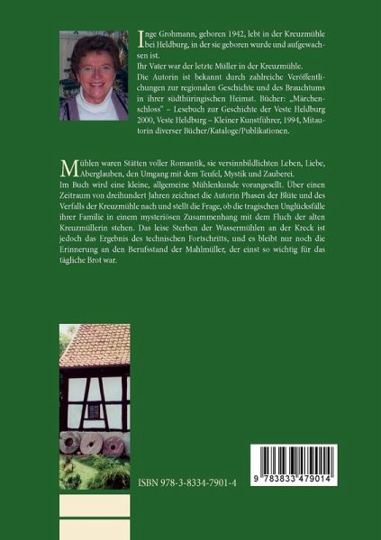 Mühlen waren Stätten voller Romantik, sie versinnbildlichten Leben, Liebe, Aberglauben, den Umgang mit dem Teufel, Mystik und Zauberei. Im Buch wird eine kleine, allgemeine Mühlenkunde vorangesellt. Über einen Zeitraum von dreihundert Jahren zeichnet die Autorin Phasen der Blüte und des Verfalls der Kreuzmühle nach und stellt die Frage, ob die tragischen Unglücksfälle ihrer Familie in einem mysteriösen Zusammenhang mit dem Fluch der alten Kreuzmüllerin stehen. Das leise Sterben der Wassermühlen an der Kreck ist jedoch das Ergebnis des technischen Fortschritts, und es bleibt nur noch die Erinnerung an den Berufsstand der Mahlmüller, der einst so wichtig für das tägliche Brot war.