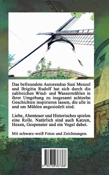 Das befreundete Autorenduo Susi Menzel und Brigitta Rudolf hat sich durch die zahlreichen Wind- und Wassermühlen in ihrer Umgebung zu insgesamt achtzehn Geschichten inspirieren lassen, die alle in und um Mühlen angesiedelt sind.Liebe, Abenteuer und Historisches spielen eine Rolle. Natürlich sind auch Katzen, Hexen, Gespenster und ein Vogel dabei.Mit schwarz-weiß Fotos und Zeichnungen.