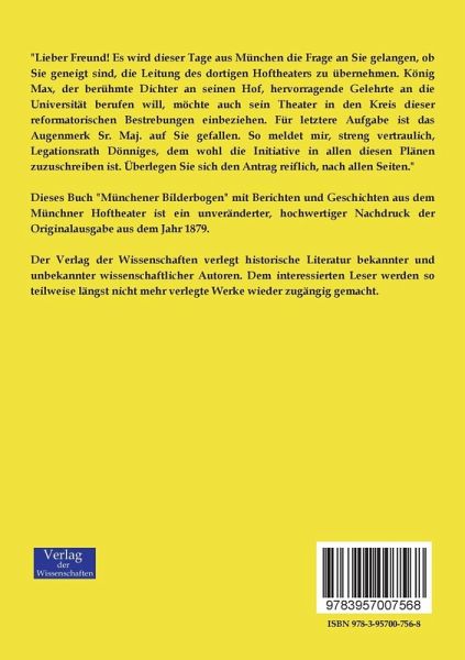 Dieses Buch "Münchener Bilderbogen" mit Berichten und Geschichten aus dem Münchner Hoftheater ist ein unveränderter, hochwertiger Nachdruck der Originalausgabe aus dem Jahr 1879.