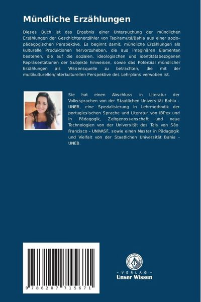 Dieses Buch ist das Ergebnis einer Untersuchung der mündlichen Erzählungen der Geschichtenerzähler von Tapiramutá/Bahia aus einer sozio-pädagogischen Perspektive. Es beginnt damit, mündliche Erzählungen als kulturelle Produktionen hervorzuheben, die aus imaginären Elementen bestehen, die auf die sozialen, ideologischen und identitätsbezogenen Repräsentationen der Subjekte hinweisen, sowie das Potenzial mündlicher Erzählungen als Wissensquelle zu betrachten, die mit der multikulturellen/interkulturellen Perspektive des Lehrplans verwoben ist.