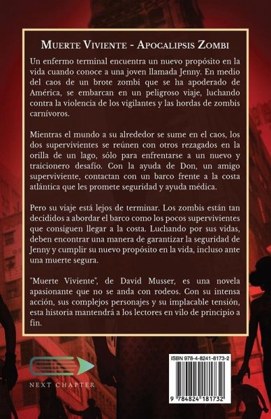Un enfermo terminal encuentra un nuevo propósito en la vida cuando conoce a una joven llamada Jenny. En medio del caos de un brote zombi que se ha apoderado de América, se embarcan en un peligroso viaje, luchando contra la violencia de los vigilantes y las hordas de zombis carnívoros. Mientras el mundo a su alrededor se sume en el caos, los dos supervivientes se reúnen con otros rezagados en la orilla de un lago, sólo para enfrentarse a un nuevo y traicionero desafío. Con la ayuda de Don, un amigo superviviente, contactan con un barco frente a la costa atlántica que les promete seguridad y ayuda médica. Pero su viaje está lejos de terminar. Los zombis están tan decididos a abordar el barco como los pocos supervivientes que consiguen llegar a la costa. Luchando por sus vidas, deben encontrar una manera de garantizar la seguridad de Jenny y cumplir su nuevo propósito en la vida, incluso ante una muerte segura. "Muerte Viviente", de David Musser, es una novela apasionante que no se anda con rodeos. Con su intensa acción, sus complejos personajes y su implacable tensión, esta historia mantendrá a los lectores en vilo de principio a fin.