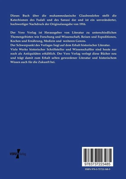 Dieses Buch über die muhammedanische Glaubenslehre stellt die Katechismen des Fudali und des Sanusi dar und ist ein unveränderter, hochwertiger Nachdruck der Originalausgabe von 1916.