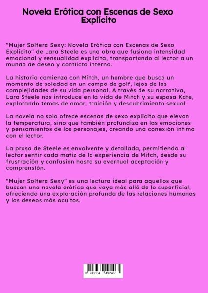 "Mujer Soltera Sexy: Novela Erótica con Escenas de Sexo Explícito" de Lara Steele es una obra que fusiona intensidad emocional y sensualidad explícita, transportando al lector a un mundo de deseo y conflicto interno. La historia comienza con Mitch, un hombre que busca un momento de soledad en un campo de golf, lejos de las complejidades de su vida personal. A través de su narrativa, Lara Steele nos introduce en la vida de Mitch y su esposa Kate, explorando temas de amor, traición y descubrimiento sexual. La novela no solo ofrece escenas de sexo explícito que elevan la temperatura, sino que también profundiza en las emociones y pensamientos de los personajes, creando una conexión íntima con el lector. La prosa de Steele es envolvente y detallada, permitiendo al lector sentir cada matiz de la experiencia de Mitch, desde su frustración y confusión hasta su eventual aceptación y comprensión."Mujer Soltera Sexy" es una lectura ideal para aquellos que buscan una novela erótica que vayamás allá de lo superficial, ofreciendo una exploración profunda de las relaciones humanas y los deseos más ocultos.
