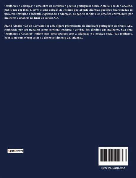 O livro "Mulheres e creanças: notas sobre educação" de Maria Amália Vaz de Carvalho aborda a educação feminina e o papel das mulheres na sociedade. A autora critica a desigualdade intelectual entre homens e mulheres, destacando como a educação inadequada das mulheres contribui para a desarmonia familiar e social. Ela argumenta que a educação das mulheres deve ser reformulada para que elas possam desempenhar um papel mais ativo e consciente na sociedade. Vaz de Carvalho defende que a educação feminina deve ir além das superficialidades, como a dança e a tapeçaria, e incluir disciplinas que promovam o desenvolvimento intelectual e moral. Além disso, a autora critica o falso luxo e a vida de aparências que muitas mulheres buscam, sugerindo que isso leva a um ciclo de insatisfação e desarmonia familiar. Ela propõe que as mulheres se concentrem em criar um ambiente familiar harmonioso e significativo, em vez de buscar a validação social através do luxo e da ostentação. Vaz de Carvalho também destaca a importância de uma educação que prepare as mulheres para serem companheiras intelectuais de seus maridos e mães conscientes de seus filhos, promovendo uma sociedade mais equilibrada e justa.