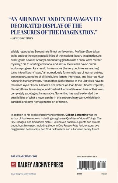 "As avant-garde novelist Antony Lamont struggles to write a 'new wave murder mystery,' his frustrating emotional and sexual life wreaks havoc on his work-in-progress. As a result, his narrative (the very book we are reading) turns into a literary 'stew,' an uproariously funny melange of journal entries, erotic poetry, parodies of all kinds, love letters, interviews, and lists--as Hugh Kenner in 'Harper's' wrote, 'for another such virtuoso of the List you'd have to resurrect Joyce'"
