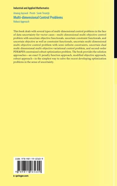 This book deals with several types of multi-dimensional control problems in the face of data uncertainty for vector cases-multi-dimensional multi-objective control problem with uncertain objective functionals, uncertain constraint functionals, and uncertain objective as well as constraint functionals, uncertain multi-dimensional multi-objective control problem with semi-infinite constraints, uncertain dual multi-dimensional multi-objective variational control problem, and second-order PDE&PDI constrained robust optimization problem. The book provides the solution approaches-an exact l1 penalty function approach, modified objective approach, robust approach-in the simplest way to solve the recent developing optimization problems in the sense of uncertainty.
