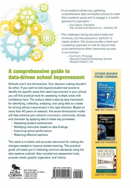 A comprehensive guide to data-driven school improvement Look beyond student test scores with a practical and multidimensional data gathering approach. The authors detail the steps for identifying, collecting, analyzing, and using data as a basis for making instructional and schoolwide decisions. This book's seven-dimensional model outlines how to apply data to these key processes: Assessing student achievement Modifying instruction based on data findings Improving school performance The result is a holistic and accurate instrument for making the changes needed to improve student learning. This practical guide will assist you in instituting common standards using the data systems outlined. Includes assessment tools, graphic organizers, and rubrics.