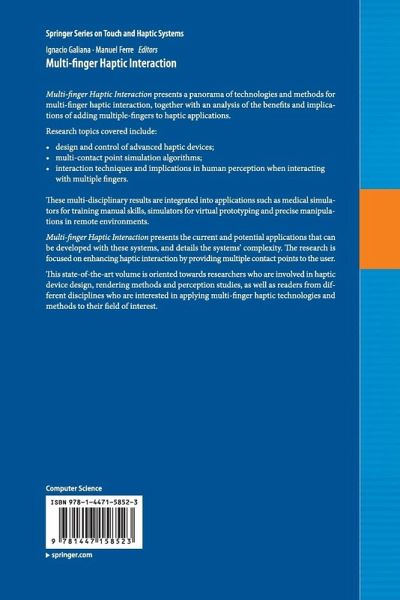 This state-of-the-art volume is oriented towards researchers who are involved in haptic device design, rendering methods and perception studies, as well as readers from different disciplines who are interested in applying multi-finger haptic technologies and methods to their field of interest.