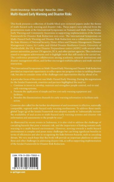 This book presents a collection of papers under the theme of multi-hazard early warning and disaster risks. These were selected from the presentations made at the International Symposium on Tsunami and Multi-Hazard Risks, Early Warning and Community Awareness in supporting implementation of the Sendai Framework for Disaster Risk Reduction 2015-2030. This conference aimed to recognize achievements and to highlight work that still needs to be carried out. The conference promoted collaboration among academia, research institutions and disaster management offices, and further encouraged multidisciplinary and multi-sectoral interaction