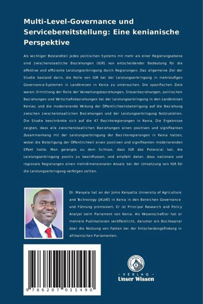 Als wichtiger Bestandteil jedes politischen Systems mit mehr als einer Regierungsebene sind zwischenstaatliche Beziehungen (IGR) von entscheidender Bedeutung für die effektive und effiziente Leistungserbringung durch Regierungen. Das allgemeine Ziel der Studie bestand darin, die Rolle von IGR bei der Leistungserbringung in mehrstufigen Governance-Systemen in Landkreisen in Kenia zu untersuchen. Die spezifischen Ziele waren: Ermittlung der Rolle der Verwaltungsbeziehungen, Steuerbeziehungen, politischen Beziehungen und Wirtschaftsbeziehungen bei der Leistungserbringung in den Landkreisen Kenias; und die moderierende Wirkung der Öffentlichkeitsbeteiligung auf die Beziehung zwischen zwischenstaatlichen Beziehungen und der Leistungserbringung festzustellen. Die Studie beschränkte sich auf die 47 Bezirksregierungen in Kenia. Die Ergebnisse zeigten, dass alle zwischenstaatlichen Beziehungen einen positiven und signifikanten Zusammenhang mit der Leistungserbringung der Bezirksregierungen in Kenia hatten, wobei die Beteiligung der Öffentlichkeit einen positiven und signifikanten moderierenden Effekt hatte. Man gelangte zu dem Schluss, dass IGR das Potenzial hat, die Leistungserbringung positiv zu beeinflussen, und empfahl daher, dass nationale und regionale Regierungen einen mehrdimensionalen Ansatz bei der Umsetzung von IGR für die Leistungserbringung verfolgen sollten.