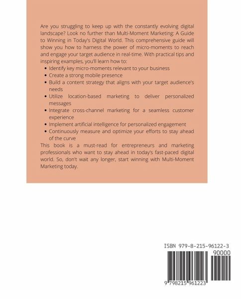 Unlock the Power of Multi-Moment Marketing and Win in Today's Digital World. Discover the strategies and tactics you need to succeed with this comprehensive guide. From defining micro-moments to executing a successful multi-moment marketing campaign, this book covers it all with real-world examples and expert insights. Embrace the future of marketing and take your brand to new heights. Get your copy of "Multi-Moment Marketing: A Guide to Winning in Today's Digital World" today!