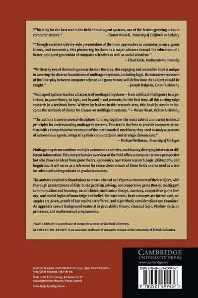 Multiagent systems are those that include multiple autonomous entities with either diverging information or diverging interests, or both. This thorough introduction to a burgeoning field is written from a computer science perspective, while bringing together ideas from operations research, game theory, economics, logic, and even philosophy and linguistics.