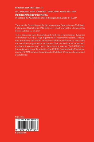 Topics addressed include analysis and synthesis of mechanisms; dynamics of multibody systems; design algorithms for mechatronic systems; simulation procedures and results; prototypes and their performance; robots and micromachines; experimental validations; theory of mechatronic simulation; mechatronic systems; and control of mechatronic systems. The MUSME 2017 Symposium was one of the activities of the FEIbIM Commission for Mechatronics and IFToMM technical Committees for Multibody Dynamics, Robotics and Mechatronics.