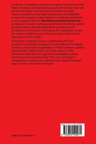 Dynamics of multibody systems is of great importance in the fields of robotics, biomechanics, spacecraft control, road and rail vehicle design, and dynamics of machinery. Many research problems have been solved and a considerable number of computer codes based on multibody formalisms is now available. With the present book it is intended to collect software systems for multibody system dynamics which are well established and have found acceptance in the users community. The Handbook will aid the reader in selecting the software system which is most appropriate to his needs. Altogether 17 research groups contributed to the Handbook. A compact summary of important capabilities of these software systems is presented in tabular form. All authors dealt with two typical test examples, a planar mechanism and a spatial robot. Thus, it is very easy to compare the results and to identify more clearly the advantages of one or the other formalism.