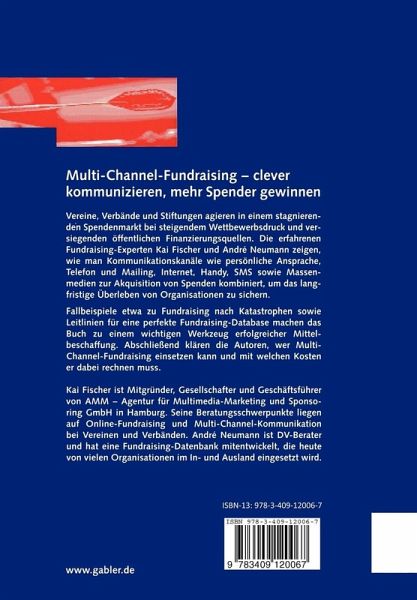 Vereine, Verbände und Stiftungen agieren in einem stagnierenden Spendenmarkt bei steigendem Wettbewerbsdruck. Die erfahrenen Fundraising-Experten Kai Fischer und André Neumann zeigen, wie man auf verschiedenen Kommunikationskanälen wie persönliche Ansprache; Telefon und Mailing; Internet; Handy; SMS sowie Massenmedien Spenden akquiriert, um das langfristige Überleben von Organisationen zu sichern. Diverse Fallbeispiele etwa zu Fundraising mit Katastrophen oder Kommunikation in PR-Krisen sowie eine Präsentation einer angepassten Database machen das Buch zu einem wichtigen Werkzeug erfolgreicher Mittelbeschaffung.