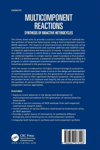 This timely book provides a succinct summary of methods for the synthesis of bioactive heterocycles using a multicomponent reaction (MCR) approach. The majority of pharmaceuticals and biologically active agrochemicals are heterocycles while countless additives and modifiers used in industrial applications are heterocyclic in nature. With the recent introduction of high-throughput biological evaluation, the importance of MCRs for drug discovery has been recognized and considerable efforts have been focused especially on the design and development of multi-component procedures for the generation of various bioactive heterocycles due to their significant therapeutic potential.