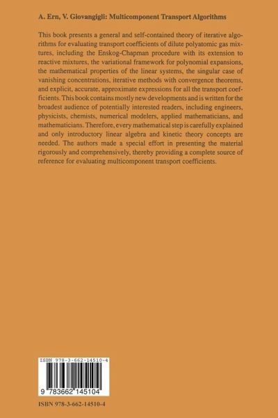 With the advent of sophisticated computer technology and the development of efficient computational algorithms, numerical modeling of complex multicomponent laminar reacting flows has emerged as an increasingly popular and firmly established area of scientific research. Progress in this area aims at obtaining better resolved and more accurate solutions of specific technological problems in less computer time. Therefore, it strongly relies upon the ability of evaluating fundamental parameters appearing in the physical models. Transport properties constitute a typical example of the above characterization. Evaluating transport coefficients of dilute polyatomic gas mixtures is often critical in many engineering applications, including chemical reactors, hypersonic flows, comb- tion phenomena, and chemical vapor deposition. Using the kinetic theory of dilute polyatomic gas mixtures as a starting point, this book offers a systematic development of a mathematical and numerical theory for the evaluation of transport properties in dilute polyatomic gas mixtures. The present investigation is not specifically.about the kinetic theory of gases, for which there are plenty of excellent and thoroughly do- mented textbooks; it is rather geared toward the development of new, efficient, and general algorithms with which to evaluate transport properties of dilute polyatomic gas mixtures at a reasonable computational cost.