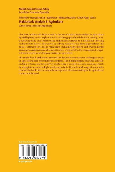 The methods and applications presented in this book cover decision-making processes in agricultural and environmental contexts. The methodologies described consider multiple criteria simultaneously in a wide range of complex decision-making contexts by taking into account multiple, conflicting criteria. Given the wide range of case studies covered, the book offers a comprehensive guide to decision-making in the agriculturalcontext and beyond.