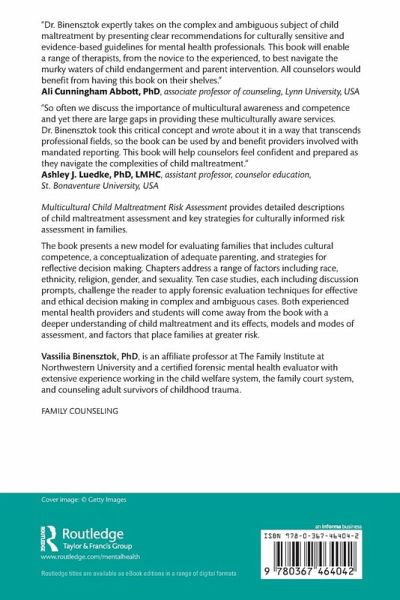Multicultural Child Maltreatment Risk Assessment provides detailed descriptions of child maltreatment assessment and key strategies for culturally informed risk assessment in families. The book presents a new model for evaluating families that includes cultural competence, a conceptualization of adequate parenting, and strategies for reflective decision making. Chapters address a range of factors including race, ethnicity, religion, gender, and sexuality. Ten case studies, each including discussion prompts, challenge the reader to apply forensic evaluation techniques for effective and ethical decision making in complex and ambiguous cases. Both experienced mental health providers and students will come away from the book with a deeper understanding of child maltreatment and its effects, models and modes of assessment, and factors that place families at greater risk.