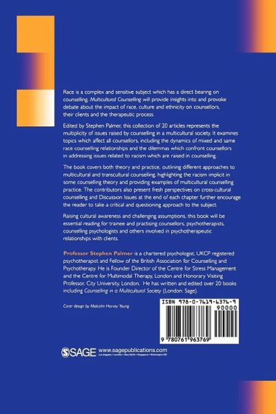 `The book contains comprehensive coverage of issues relating to multicultural counselling, still current ten years after the first of the collected papers was published. The discussion points after each chapter give the whole book a text-book feel, which belies its more general significance as a professional 'Raising cultural awareness and challenging assumptions, this book will be essential reading' - Stress News Race is a complex and sensitive subject which has a direct and significant bearing on counselling. Multicultural Counselling provides insights and provokes debate about the impact of race and ethnicity on counsellors, their clients and the therapeutic process. Edited by Stephen Palmer, this collection of 20 articles represents the multiplicity of issues raised by counselling in a multicultural society. It examines topics which affect all counsellors, including the dynamics of mixed and same race counselling relationships and the dilemmas which confront counsellors in how to address issues related to racism which are raised in counselling. The book covers both theory and practice, outlining different approaches to multicultural and transcultural counselling, highlighting the racism implicit in some counselling theory and providing examples of multicultural counselling practice. The Reader also presents fresh perspectives on counselling from beyond the predominantly white, Western culture in which it evolved and discussion issues at the end of each chapter further encourage the reader to take a critical and questioning approach to the subject. Multicultural Counselling brings to the fore the key issues involved in multicultural counselling and captures the full complexity of the subject. Essential reading for trainee and practising counsellors, psychotherapists, counselling psychologists and others involved in therapeutic relationships with clients, the book aims to raise cultural awareness and challenge assumptions.
