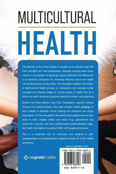 The Diversity of the United States is valuable because every culture brings with it strengths and differing perspectives. Although knowing about every culture is not possible, recognizing cultural similarities and differences is essential for delivering effective community services and one-on-one health care to individuals. The thoroughly updated third edition of Multicultural Health provides an introduction and overview to the concepts and theories related to cultural issues in health and as a primer on health issues and practices specific to certain cultural groups. Divided into three distinct units (The Foundations; Specific Cultural Groups; and Looking Ahead), this book contains robust pedagogy in each chapter to stimulate critical thinking and classroom and online discussions. For this new edition, the authors have added a second case study to each chapter, added new topics (e.g., generational and rural/urban cultures), and have updated and/or added statistical, legal, and health information (including COVID-19) throughout the book. This is a must-have text for instructors and students in both undergraduate and graduate-level programs across all of the health professions.